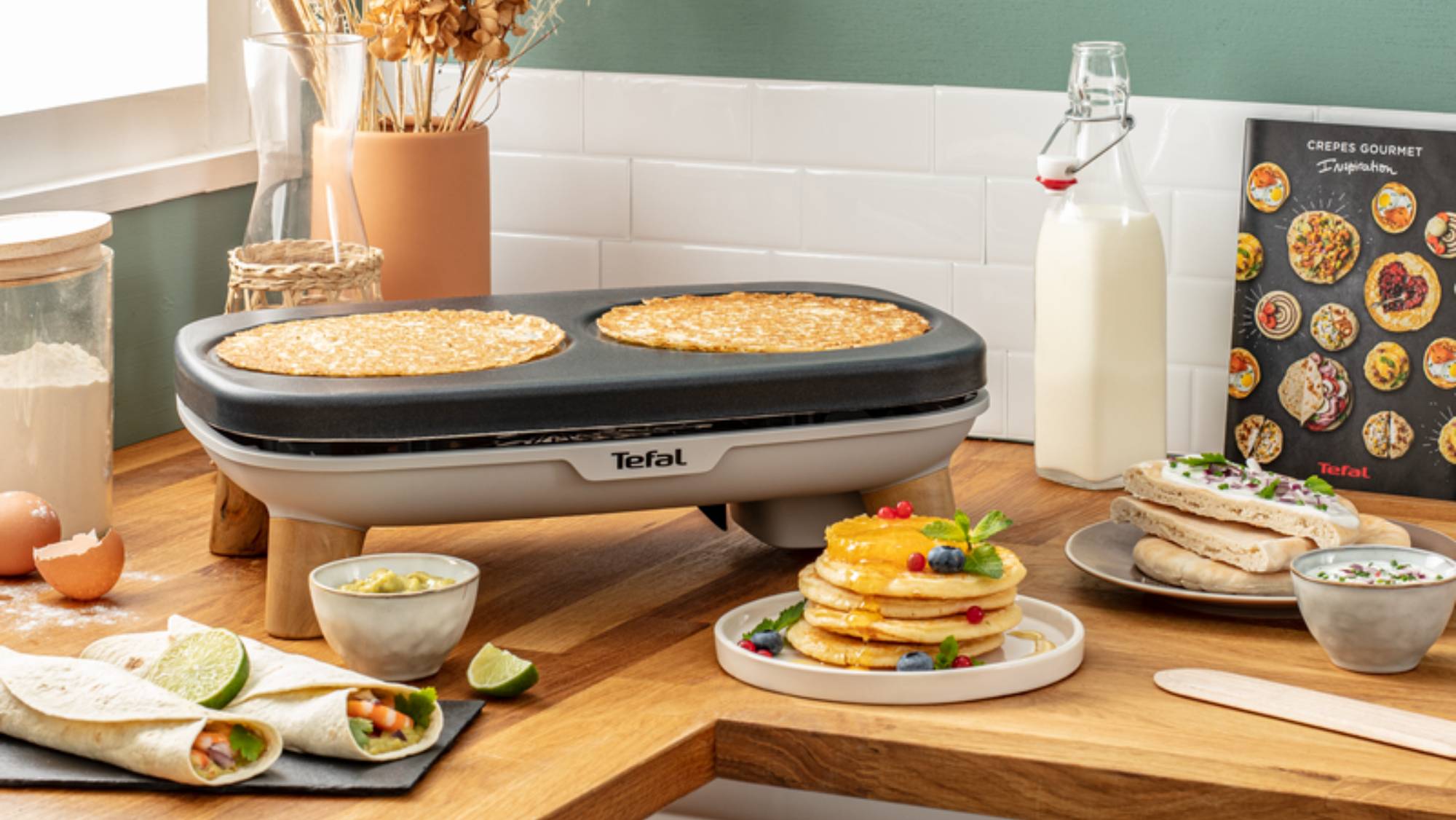 Ponte creativo con tus seres queridos en gracias a las creperas de Tefal. Ideales para crear todo tipo de recetas de panqueques salados y dulces, nuestros platos eléctricos para crepes son ideales para obtener resultados deliciosos en todo momento. Simplemente vierte la preparación y espera a que surjan unos crepes perfectos, voltéalos y sirvélos con frutas y dulces caseros.
