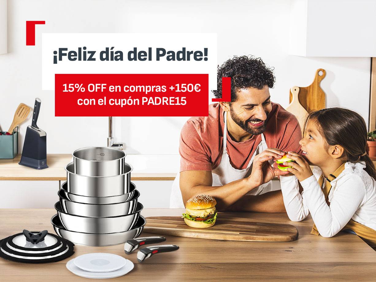 - Sorprende a papá con innovación en la cocina y disfruta de un 15% de descuento adicional en compras superiores a 150€ con el cupón PADRE15*Promoción válida del 27/02 al 19/03.