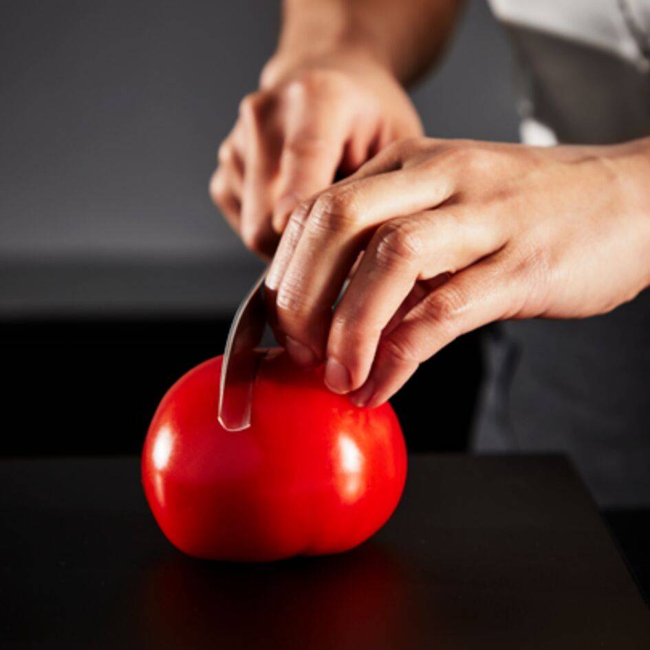 ¡No más ingredientes aplastados o desmenuzados! El cuchillo Precision está diseñado para ofrecer resultados óptimos, con una punta afilada que atraviesa los ingredientes con suavidad y eficacia. Su ángulo de corte de 22° garantiza un corte limpio y preciso en todo momento, sin importar el ingrediente.