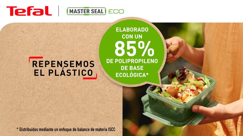 Presentamos una solución de almacenamiento para tus alimentos tan sostenible como práctica. Fabricados con un 85 % de polipropileno ecológico (enfoque de equilibrio de masa), los herméticos Masterseal Eco de Tefal están certificados según los requisitos del ISCC para ofrecer un rendimiento respetuoso con el medioambiente en el que puedes confiar. El resultado son unos herméticos duraderos y 100 % a prueba de fugas, con un sellado de gran firmeza para mayor tranquilidad y una frescura duradera. Además, esta solución perfecta todo en uno es apta para el microondas y el congelador: pasa de guardarlos en el frigorífico o en el congelador a recalentarlo en el microondas, o incluso a transportar tus alimentos sobre la marcha. Son completamente aptos para el lavavajillas, para una limpieza fácil y una higiene perfecta. Descubre el perfecto recipiente de alimentos sostenible fabricado en Alemania con una promesa de calidad hecha para durar.