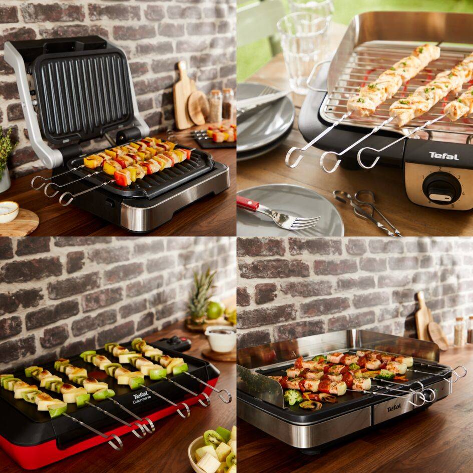 Nuestros accesorios para asar son óptimos para usar con una amplia gama de tus productos Tefal favoritos, desde OptiGrill y la Plancha eléctrica hasta la Barbacoa EasyGrill. Además, son compatibles tanto con rejillas de acero inoxidable como con superficies antiadherentes, lo que garantiza una versatilidad total y un uso práctico en el día a día.