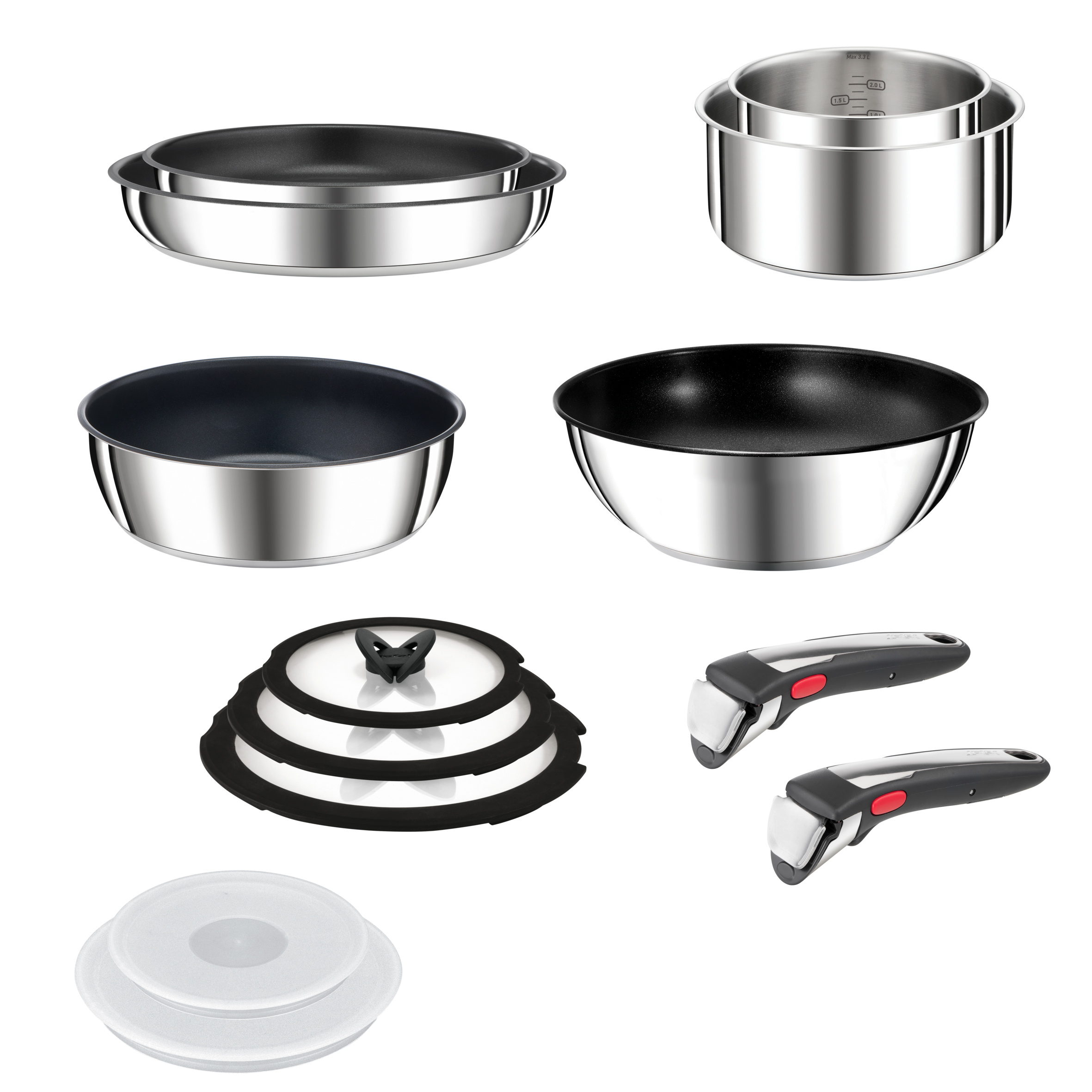 Tu kit Ingenio Preference On, Set de cocina 13 piezas + 2 Mangos extraíbles, Acero inoxidable 18/10, Revestimiento antiadherente, Inducción