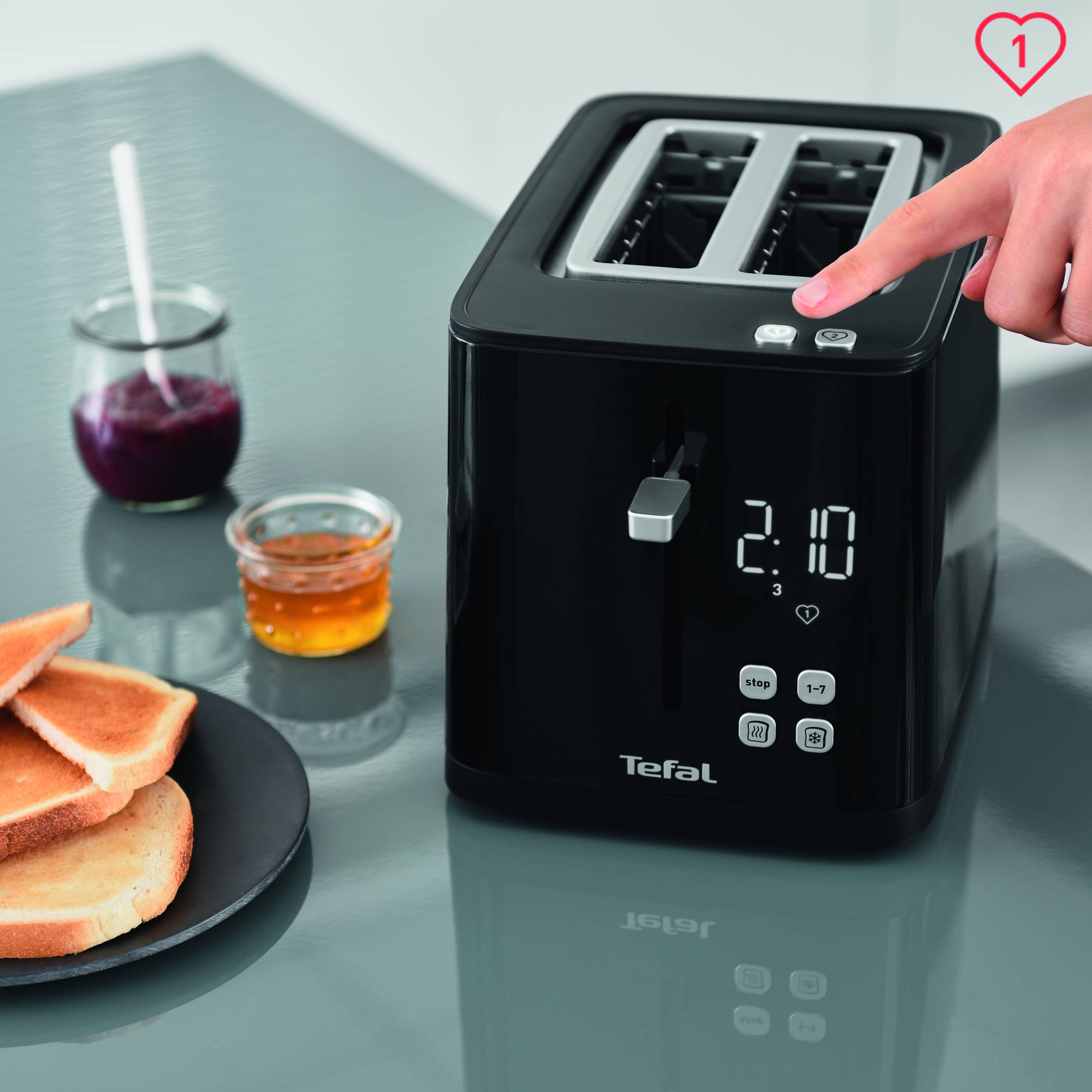 Moderniza tu cocina con esta tostadora intuitiva y avanzada, tan elegante como funcional. La tostadora digital de dos ranuras de Tefal garantiza un pan tostado a la perfección, justo como a ti te gusta, gracias a la función de memoria fácil de usar, la práctica cuenta atrás digital y los siete niveles de tostado. Con sus útiles funcionalidades y un diseño sencillo y moderno, la tostada más deliciosa está a un botón de distancia.