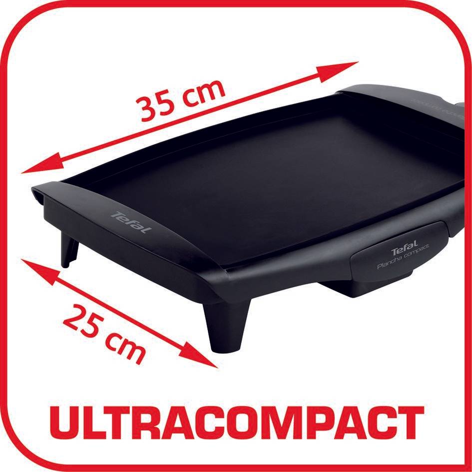 Tefal Plancha Compact, plancha eléctrica, 1800 W, apta para lavavajillas, almacenamiento fácil